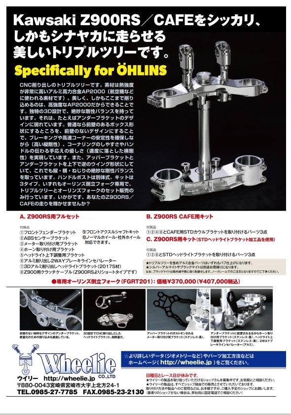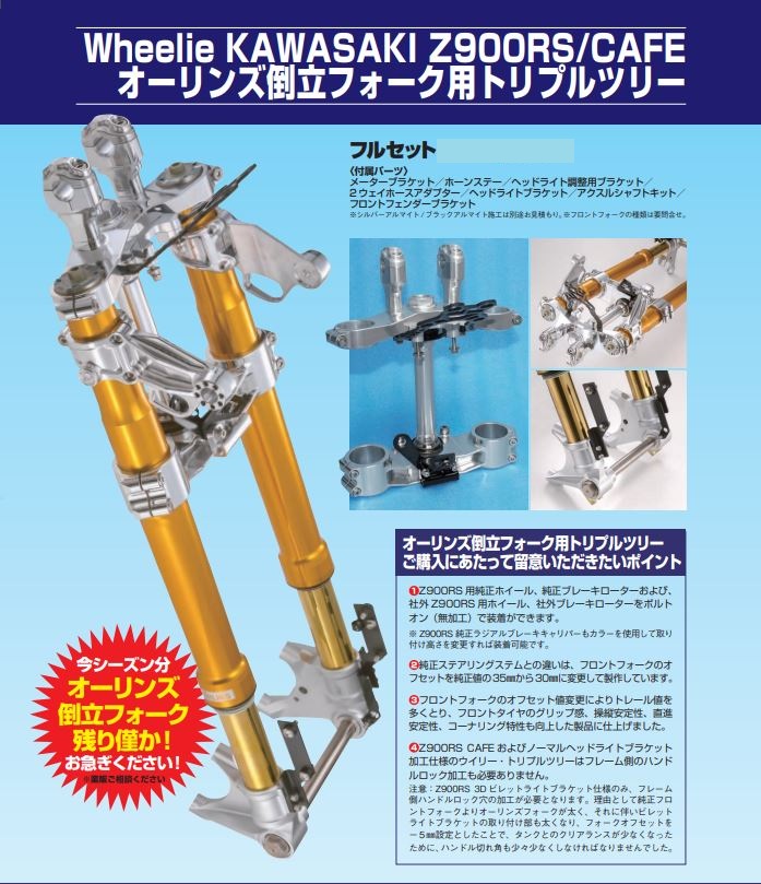 KAWASAKI Z900RSカフェ オーリンズ倒立フォーク用トリプルツリー