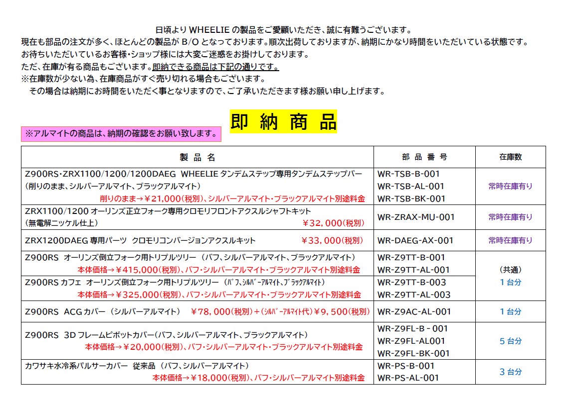 2025年12月スイングアーム受注(予約)開始についてのお知らせ