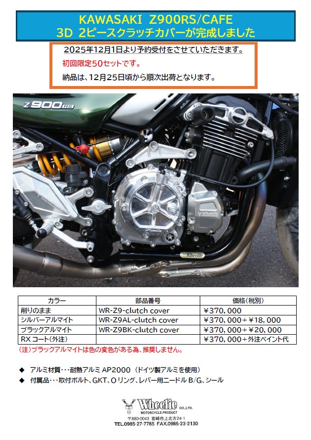 Z900RS/CAFE 3D 2ピースクラッチカバー完成