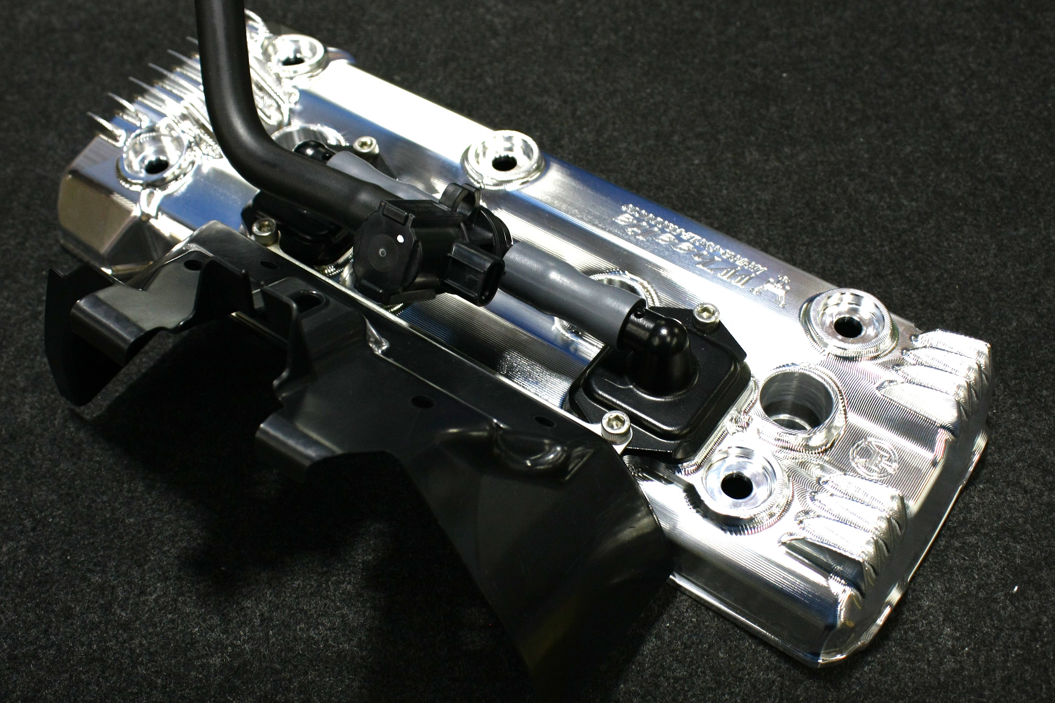 純正然とした凹凸をなくし、左右をストレートに繋いだカムシャフトハウジングと、美しい削り目が特徴です。