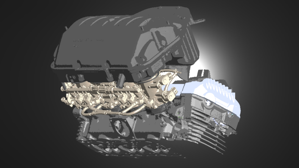 本製品の例でいえば、シリンダーヘッドといった取付け先の部品はもちろん、周辺の関連部品までもデジタルモデル化し、タイミングチェーンの駒やその軌跡といった動きの要素まで考慮したうえで再構築しています。